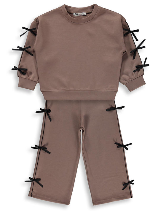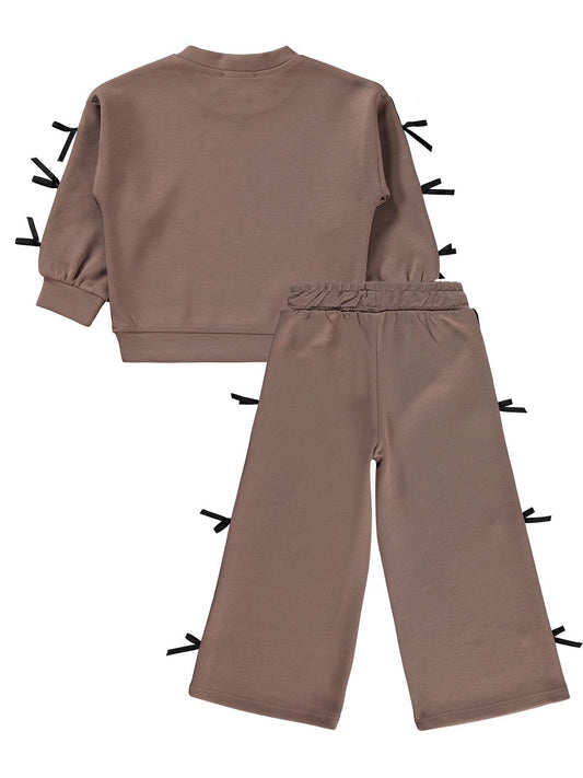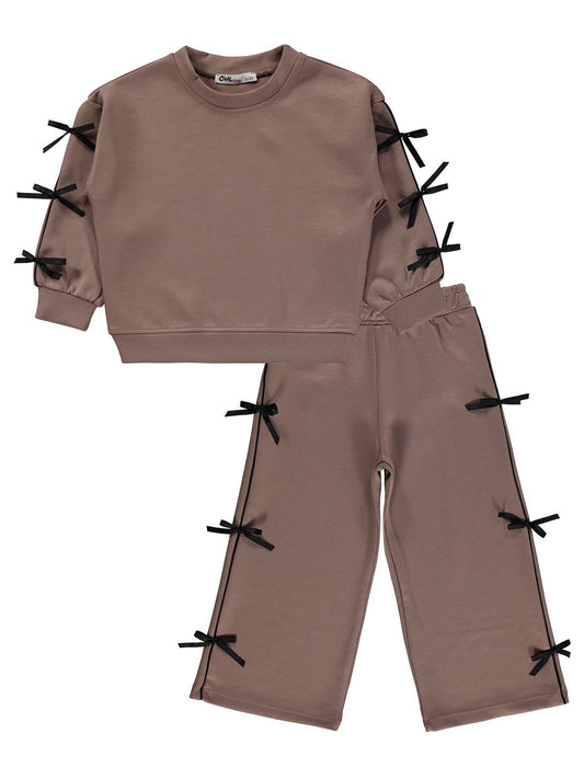 Civil girls kız çocuk fiyonklu 2-5 yaş eşofman takımı - bej