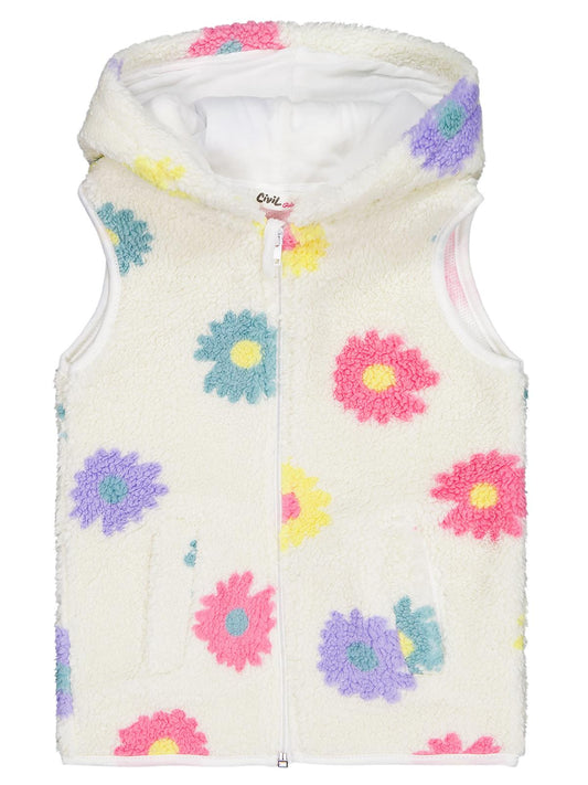 Civil girls çiçek desenli 2-5 yaş yelek - ekru