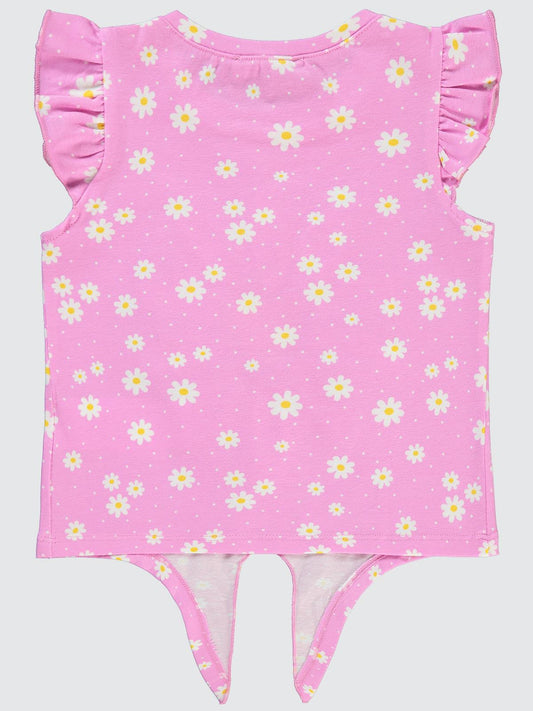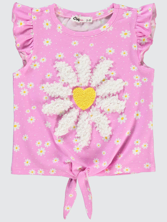 Civil girls puanlı papatya nakışlı 2-5 yaş tişört - pembe