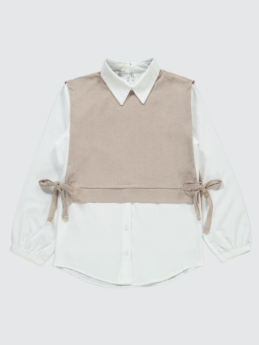 Civil girls örgü desenli 6-9 yaş takım - bej