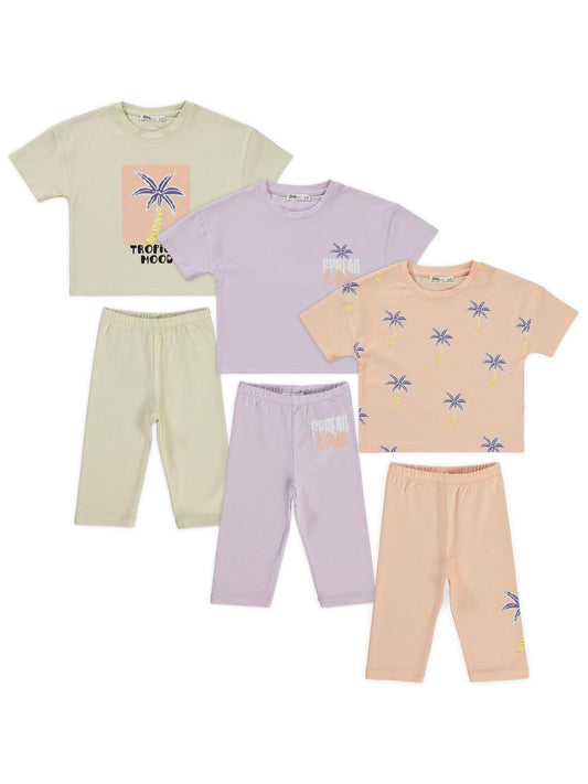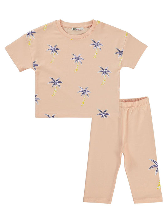Civil girls palmiye baskılı kısa kol 3'lü set 2'li 2-5 yaş takım