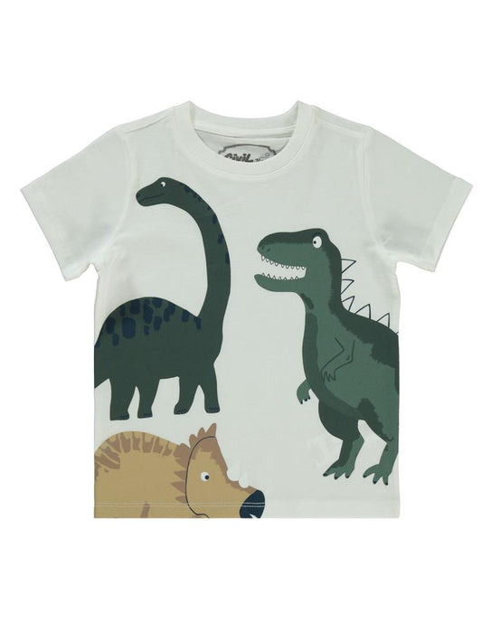 Civil boys dinozorlar alemi baskılı 2-5 yaş tişört - ekru