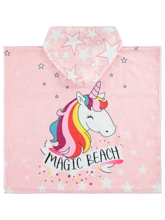 Civil girls unicorn baskılı 70x130 cm pelerin - pudra