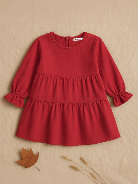 • Civil girls kat kat 2-5 yaş elbise - kırmızı