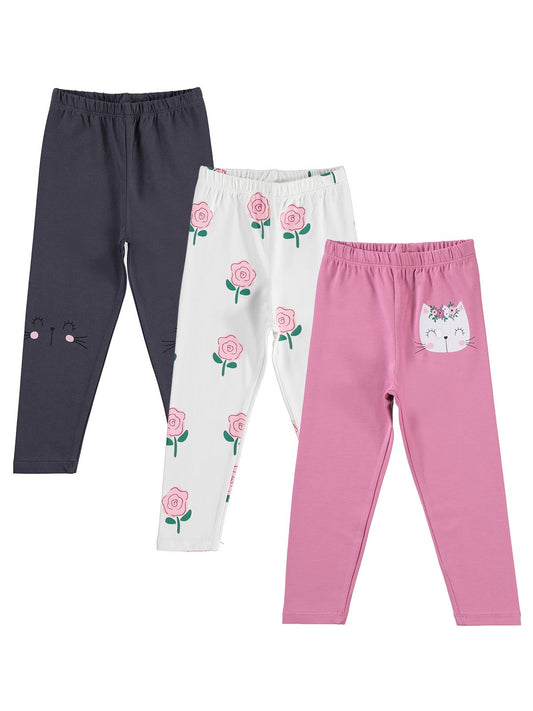 Civil girls çiçek baskılı 3'lü set 2-5 yaş tayt