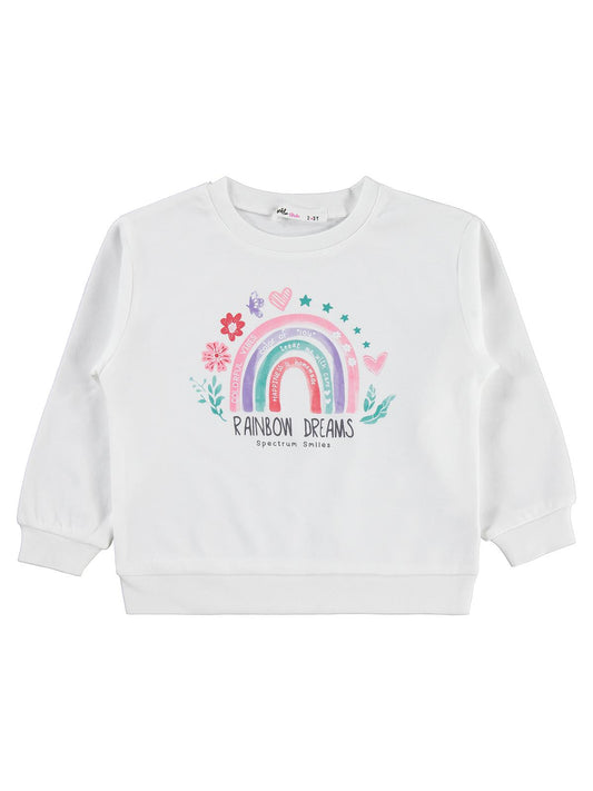 Civil girls rainbow baskılı 2-5 yaş sweatshirt - ekru