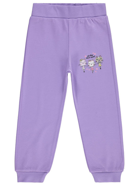 Civil girls kediler baskılı 2-5 yaş eşofman altı - lila