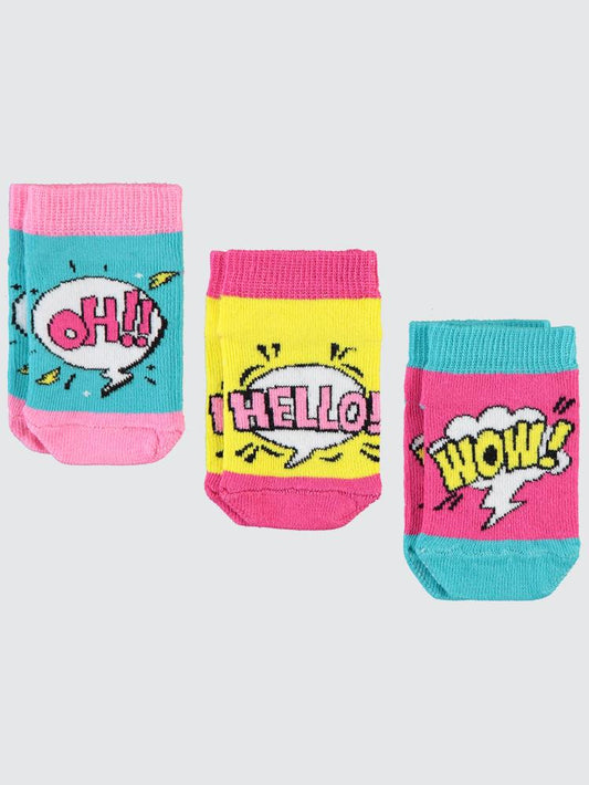 Civil girls motto 3'lü 2-12 yaş patik çorap
