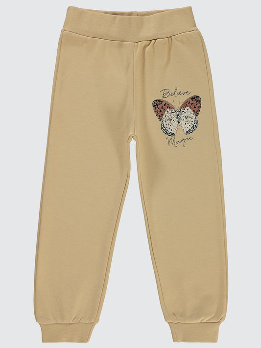 Civil girls kelebek baskılı 2-5 yaş eşofman altı - bej