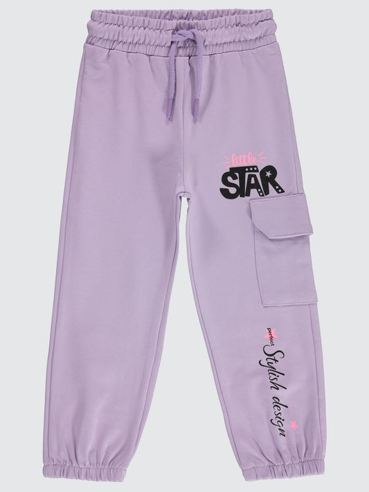 Civil girls yanı cepli baskılı 2-5 yaş eşofman altı - lila
