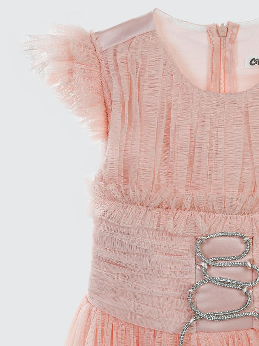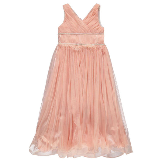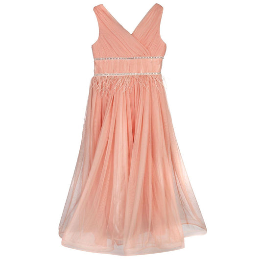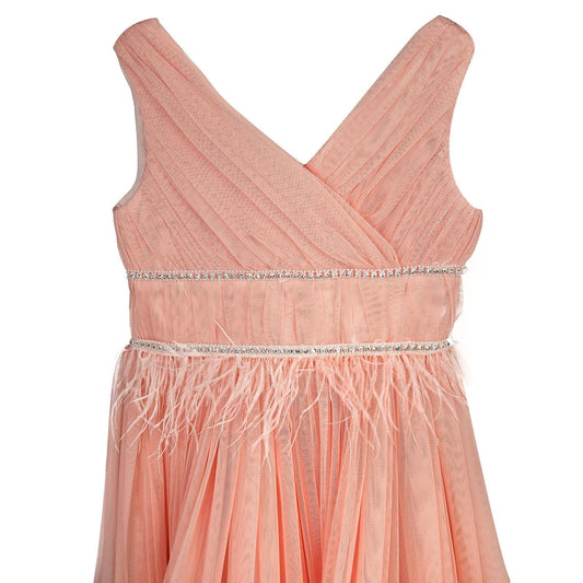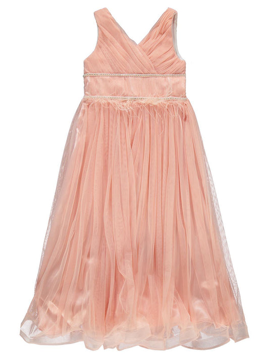 Civil girls beli taşlı tüylü 6-14 yaş abiye - pudra