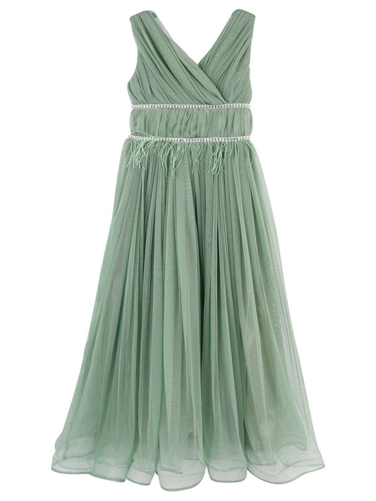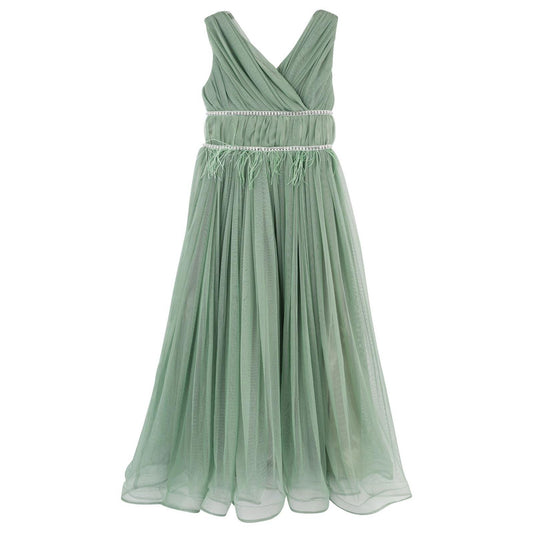 Civil girls beli taşlı tüylü 6-14 yaş abiye - yeşil