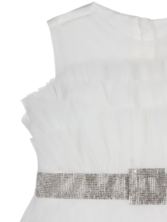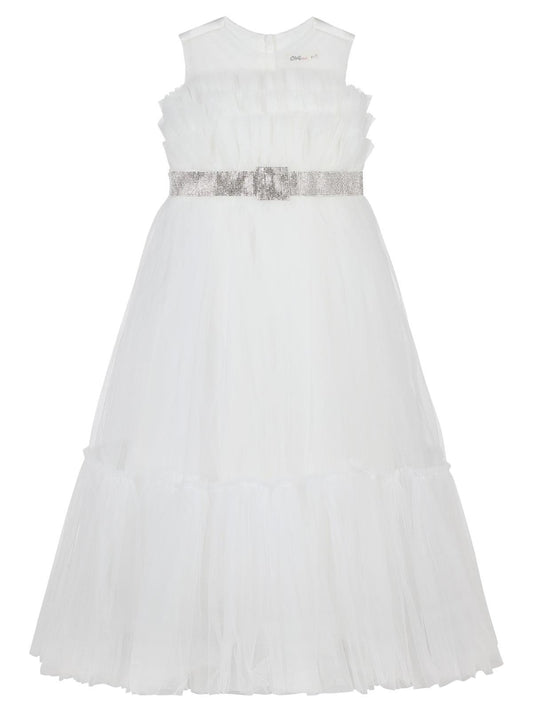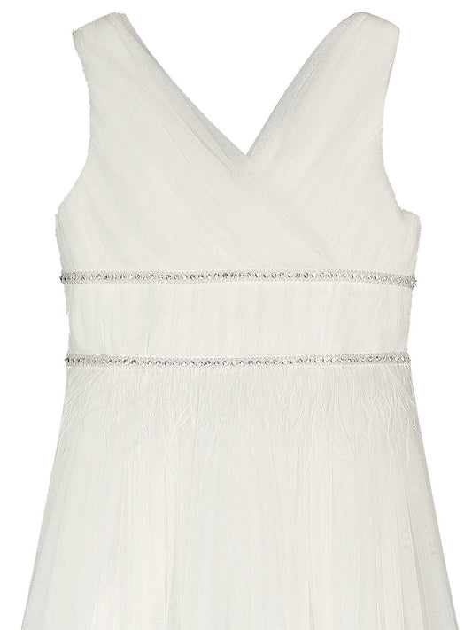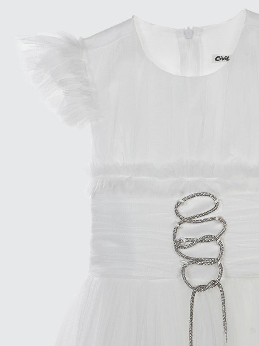 Civil girls beli taşlı tüylü 6-14 yaş abiye - beyaz