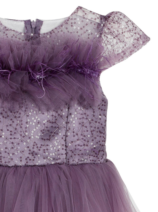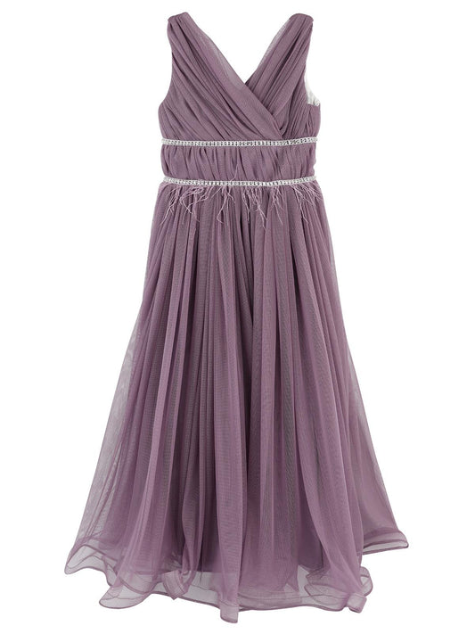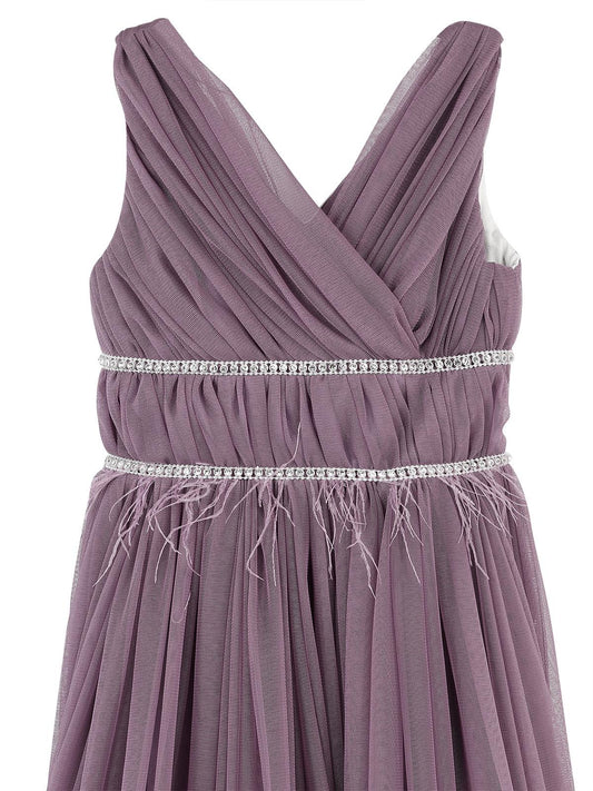 Civil girls beli taşlı tüylü 6-14 yaş abiye - lila