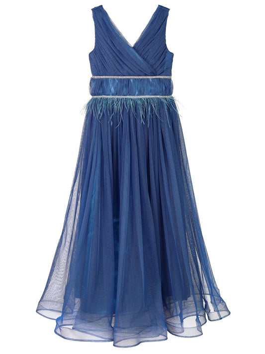 Civil girls beli taşlı tüylü 6-14 yaş abiye - mavi