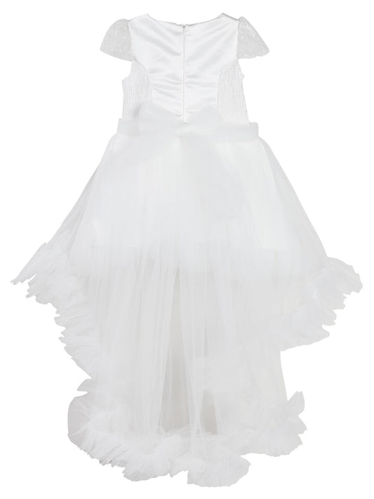 Civil girls robası tüylü kuyruklu 6-14 yaş abiye - beyaz