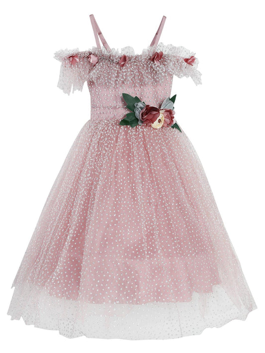 Civil girls çiçek aksesuarlı 2-5 yaş abiye - pudra