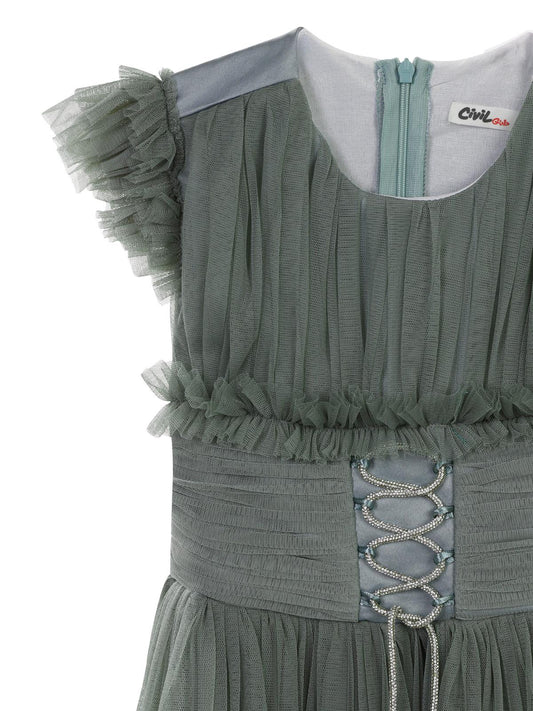 Civil girls bağcıklı 6-14 yaş abiye - yeşil