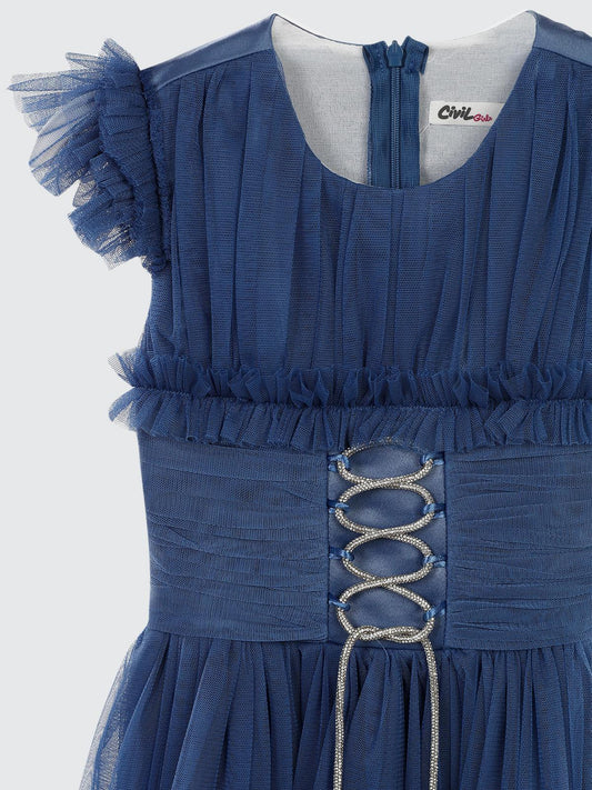 Civil girls bağcıklı 6-14 yaş abiye - mavi