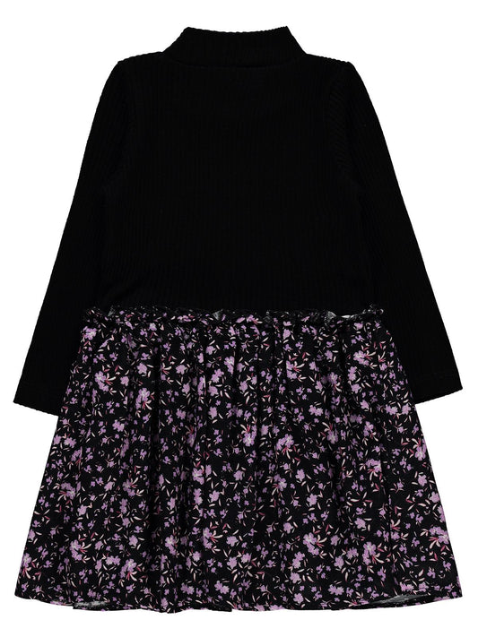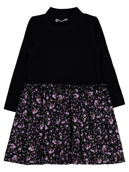 Civil girls çiçek desenli 2-5 yaş elbise - siyah