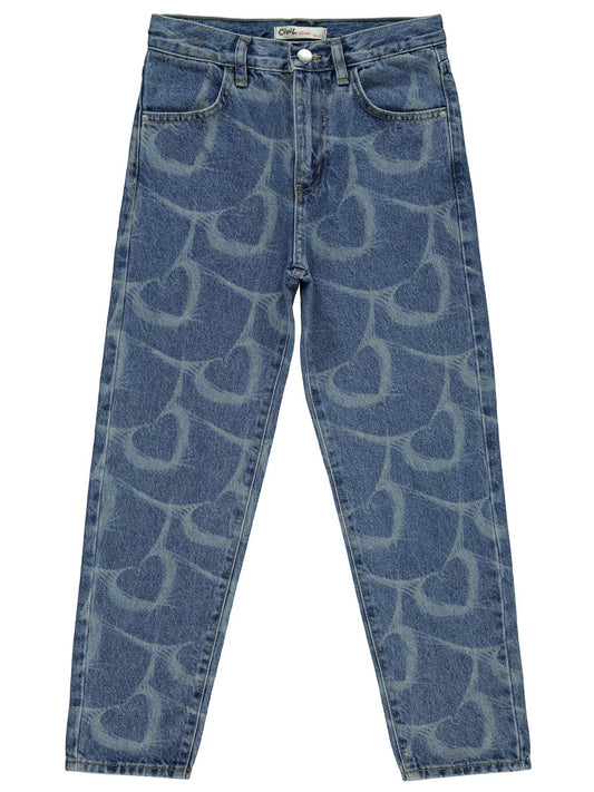 Civil girls kalp baskılı 10-13 yaş pantolon - mavi