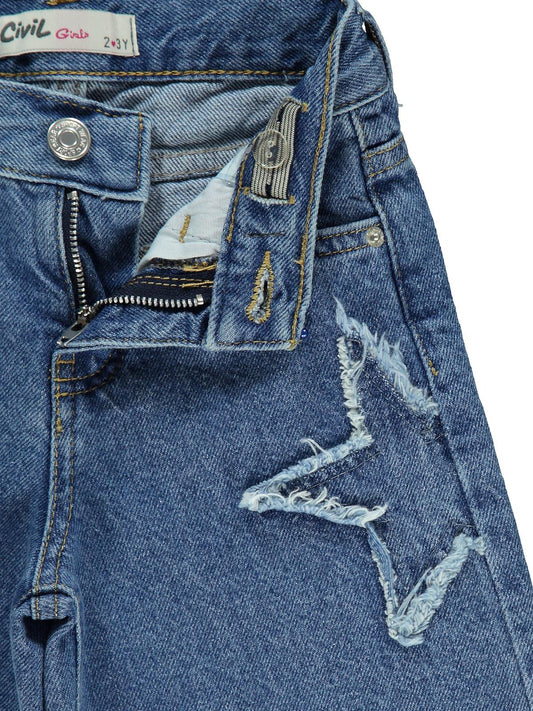 Civil girls yıldız nakışlı 6-9 yaş pantolon - mavi