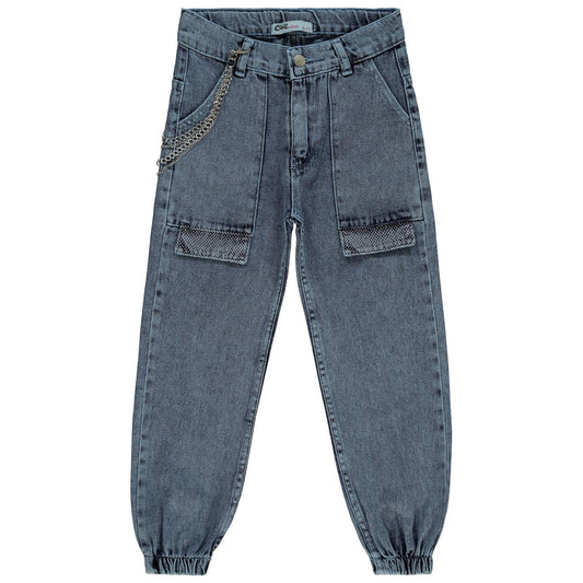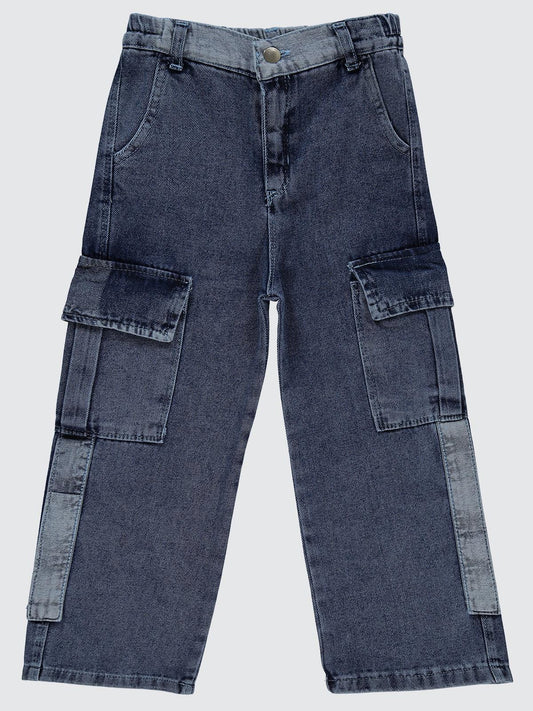 Civil girls kargo cepli boru paça 10-13 yaş pantolon - mavi
