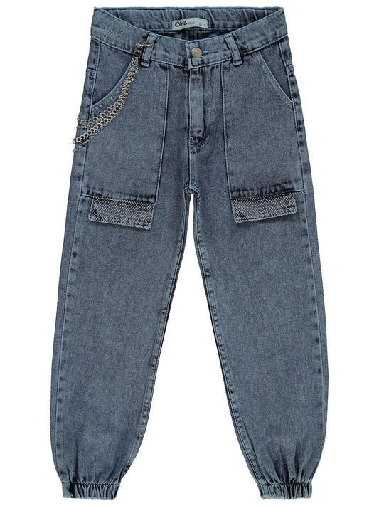 Civil girls torba cepli kapaklı 10-13 yaş pantolon - mavi