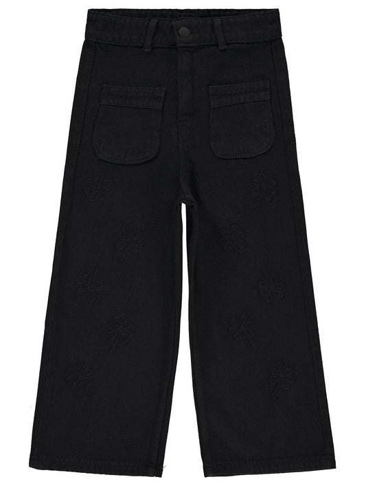 Civil girls çiçek nakışlı 10-13 yaş pantolon - siyah