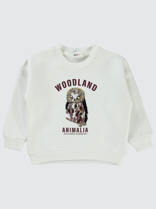 Civil girls pullu baykuş baskılı 6-9 yaş sweatshirt - ekru