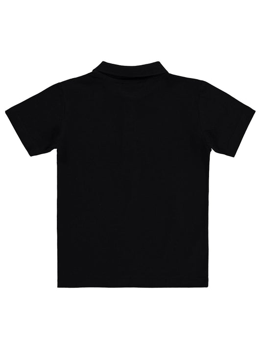 Civil boys palmiye nakışlı polo yaka 10-13 yaş tişört - siyah