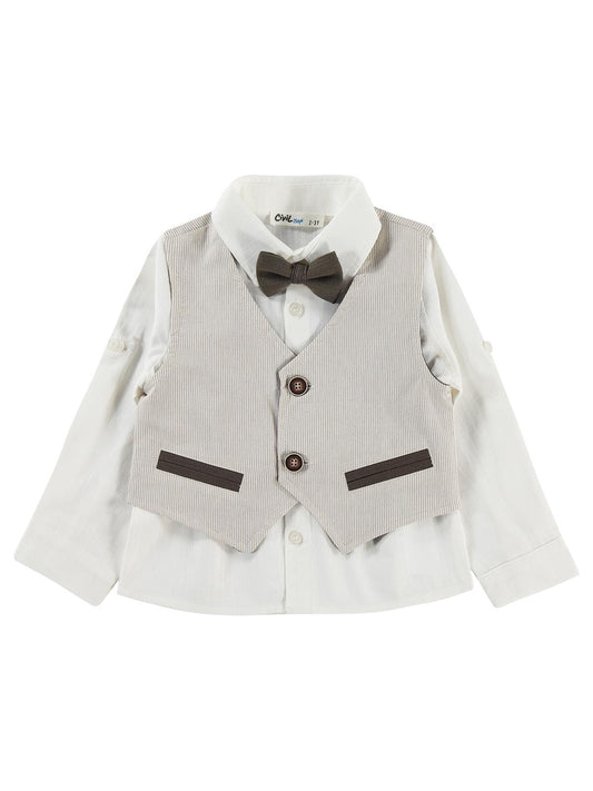 Civil boys erkek çocuk papyonlu yelekli 2-5 yaş gömlek - bej