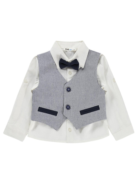 Civil boys erkek çocuk papyonlu yelekli 2-5 yaş gömlek - lacivert