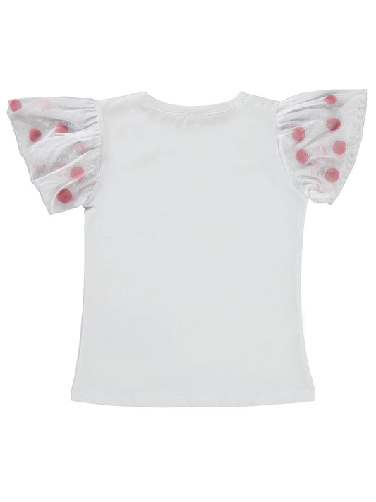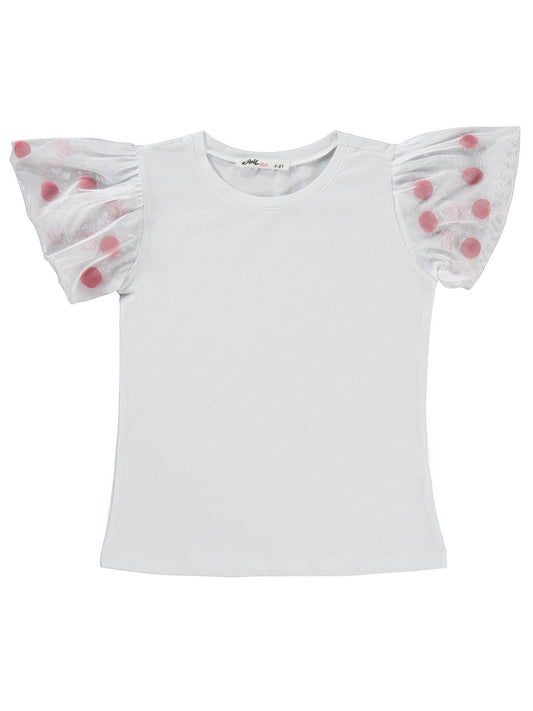 Civil girls kolu ponponlu 4-9 yaş tişört - beyaz