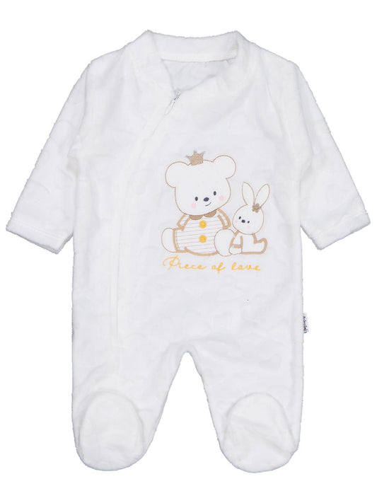 Minidamla kız ayı tavşan nakış fermuarlı 1-6 ay tulum - ekru