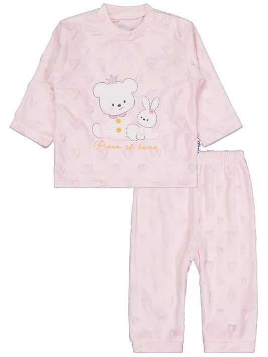 Albimini kız ayı tavşan nakış patikli 2li pijama takım 1-6 ay - kahve