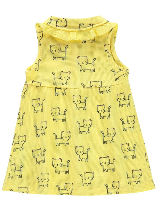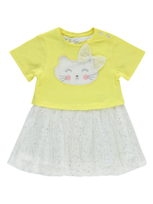 Civil baby kedi fiyonk nakışlı 6-18 ay elbise - sarı
