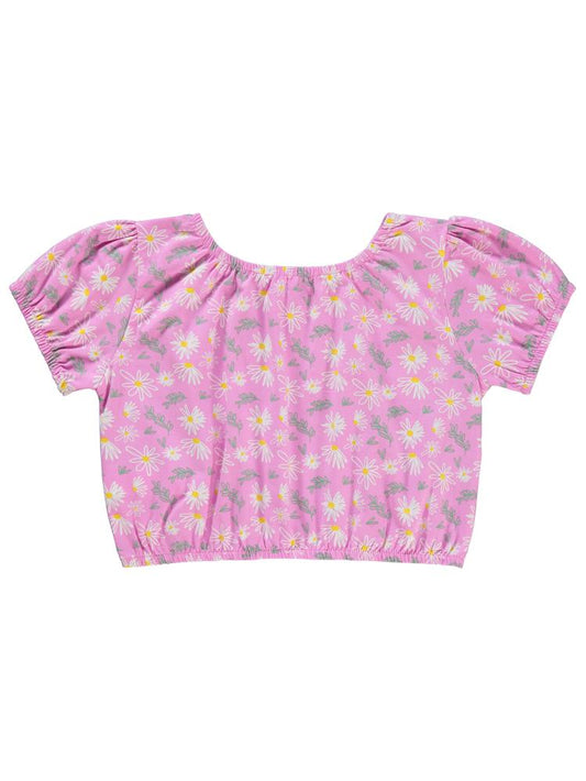 Civil girls lastikli papatya empirme crop 6-9 yaş tişört - pembe