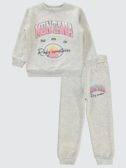 Civil girls montana baskılı 2-5 yaş eşofman takımı - ekru