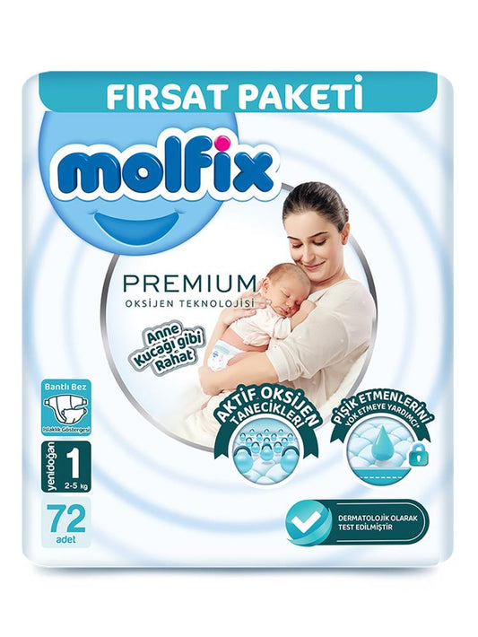 Molfıx premium bebek bezi yenidoğan fırsat paketi 72 adet 1 numara