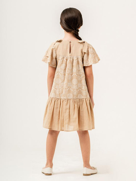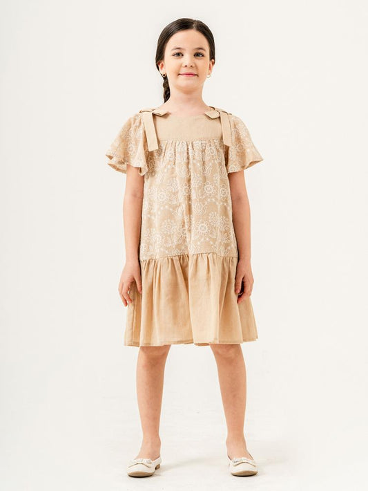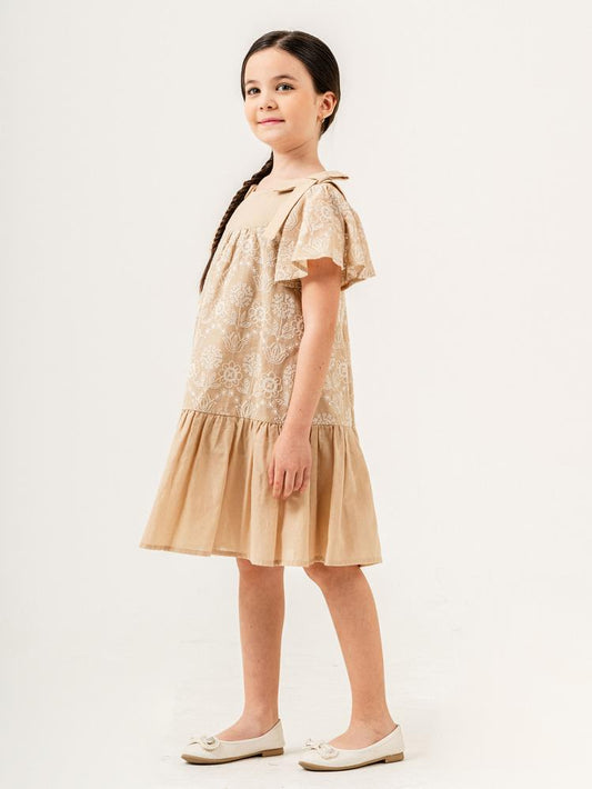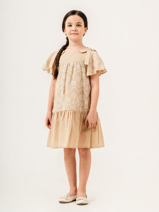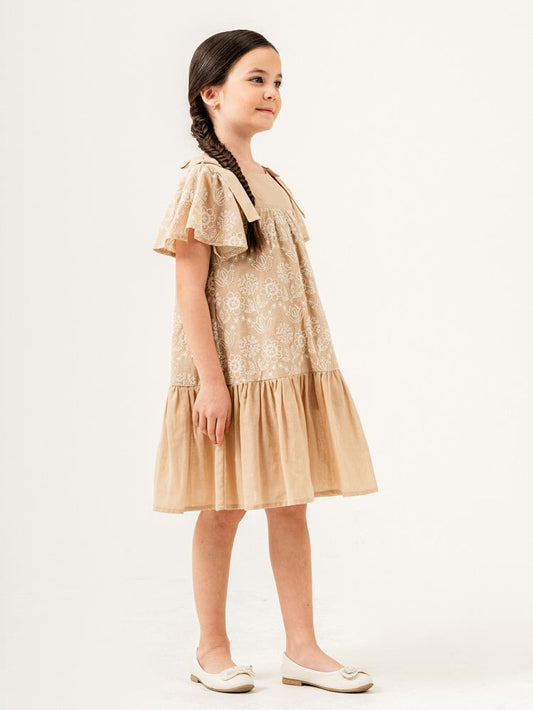 Cocoland çiçek desenli 2-5 yaş elbise - bej