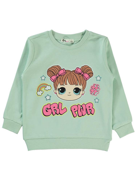 Civil girls grl pwr baskılı 2-5 yaş sweatshirt - yeşil