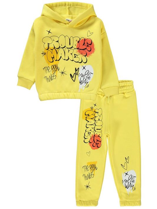 Civil girls grafitiy baskılı 2-5 yaş eşofman takımı - sarı