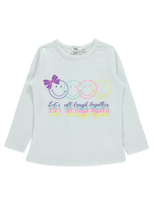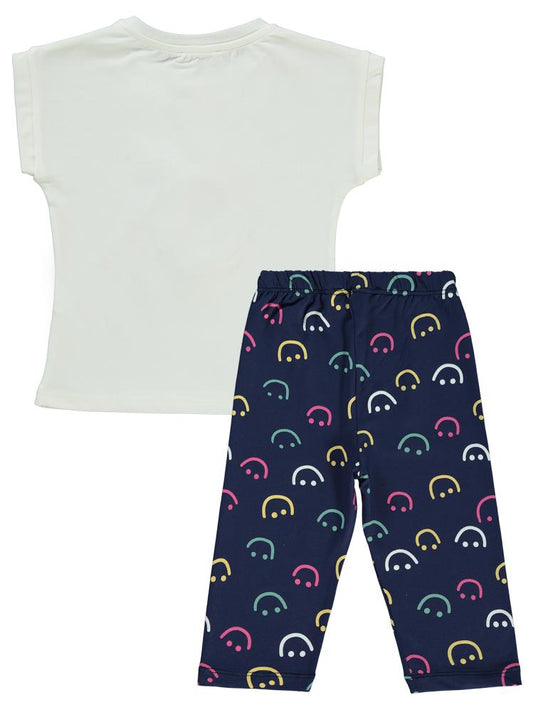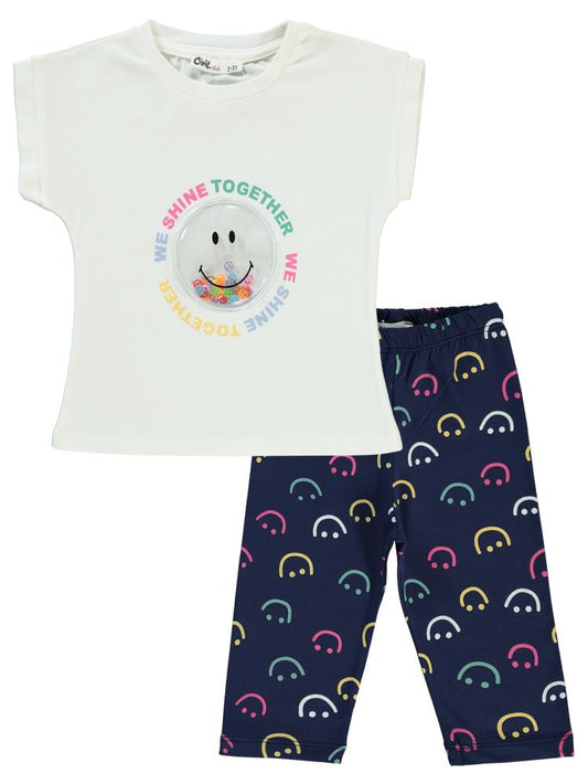 Civil girls gülen yüz baskılı 2-5 yaş takım - beyaz