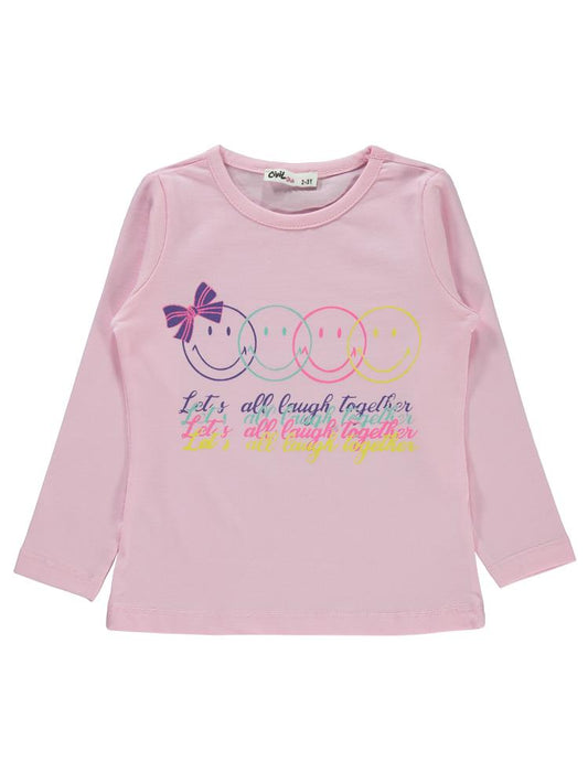 Civil girls gülen yüz baskılı 2-5 yaş sweatshirt - pembe