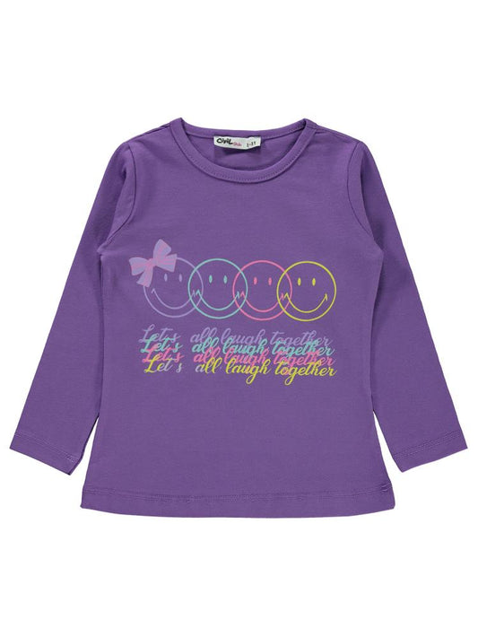 Civil girls gülen yüz baskılı 2-5 yaş sweatshirt - lila