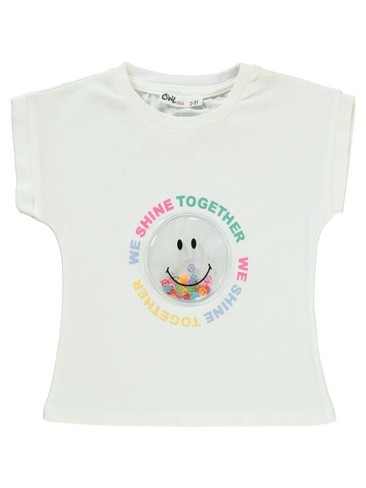Civil girls güneş baskılı 2-5 yaş tişört - ekru