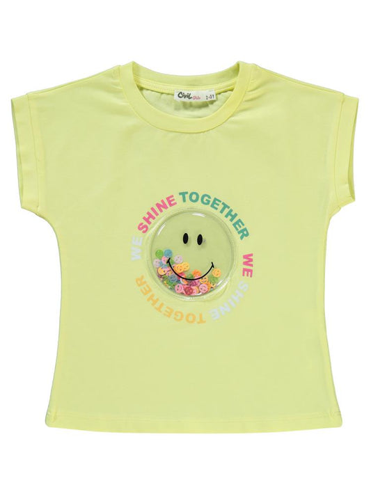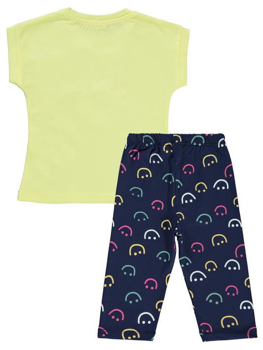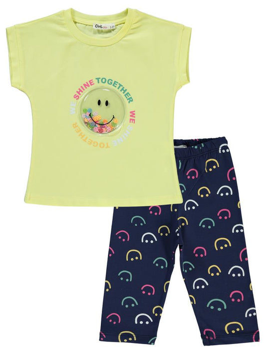 Civil girls gülen yüz baskılı 2-5 yaş takım - sarı