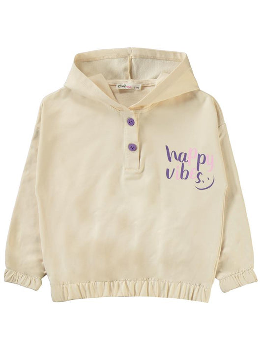 Civil girls happy baskılı 6-9 yaş sweatshirt - ekru
