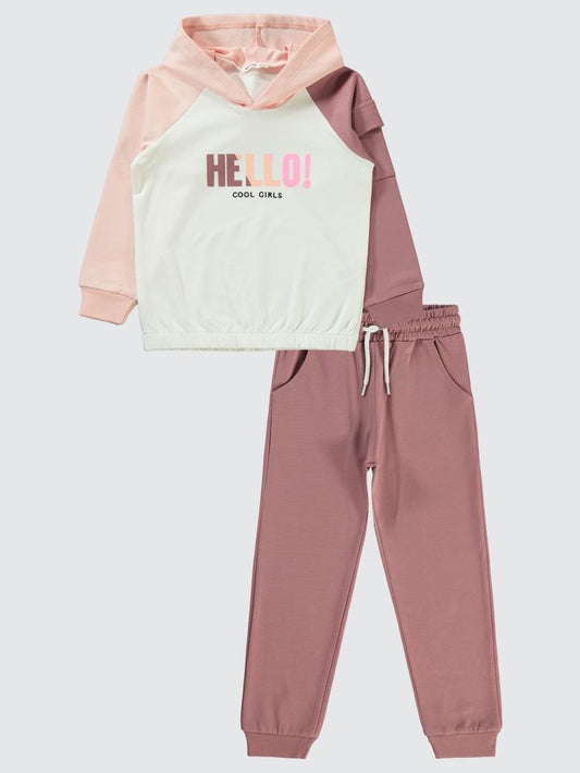 Civil girls hello baskılı 6-9 yaş eşofman takımı - pembe